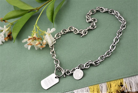 $15.00 USDUnit price /UnavailableHip Hop Titanium Steel F&IC Rectangle Necklace