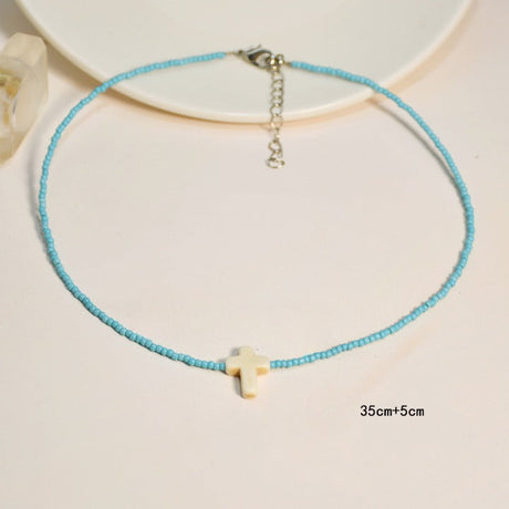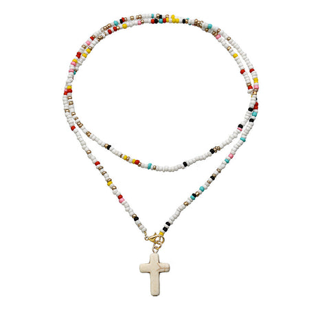 $19.99 USDUnit price /UnavailableHandmade Colorful Glass Seed Beads Cross Pendant Double-Layer Necklace