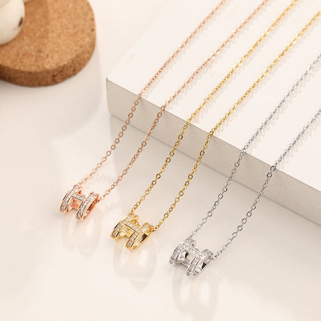 $16.99 USDUnit price /UnavailableH Pendant with Rhinestones Necklace Stainless Steel