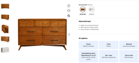 $148.00 USD$198.00Unit price /UnavailableAlpine Mid-century style dresser with 7 drawers