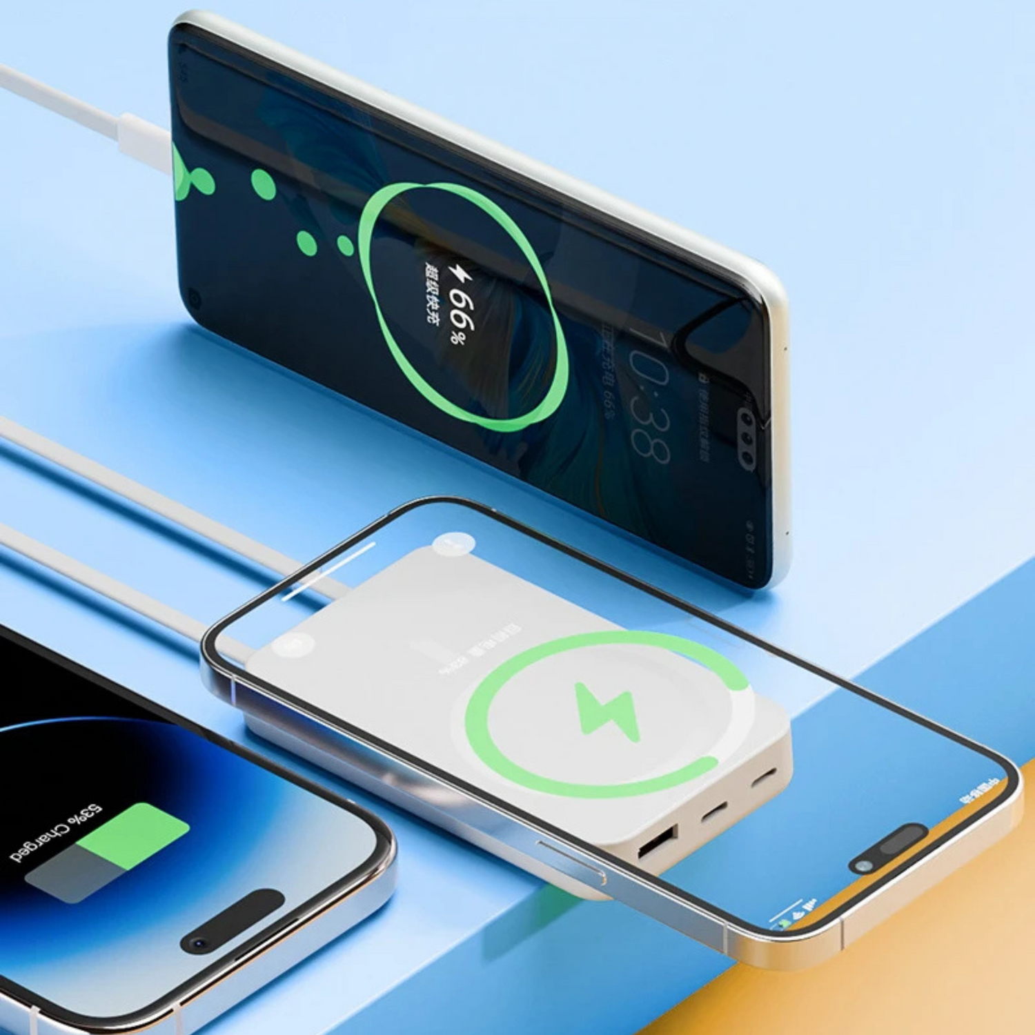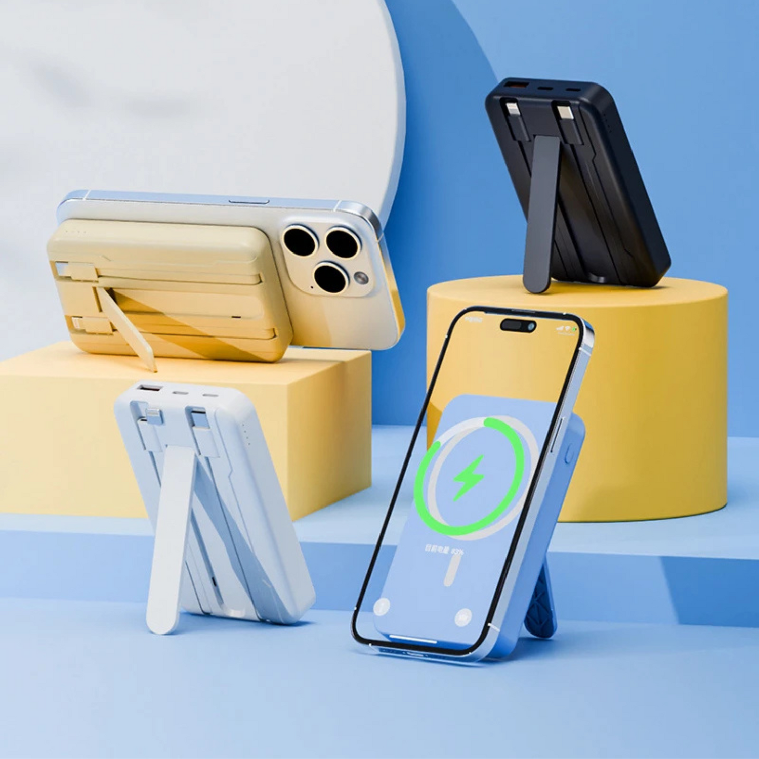 10000mAh Magnetic Wireless Powerbank with Stand and Built-in Cables
