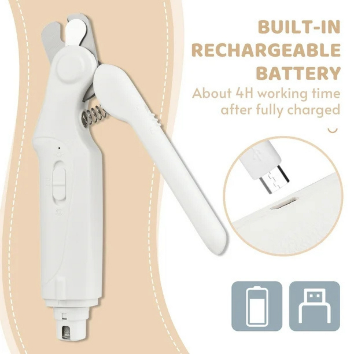- LED Illumination: Features 2 LED lights for clear visibility of nail and blood vessels. Helps prevent over-grinding, ensuring gentle and accurate grooming.