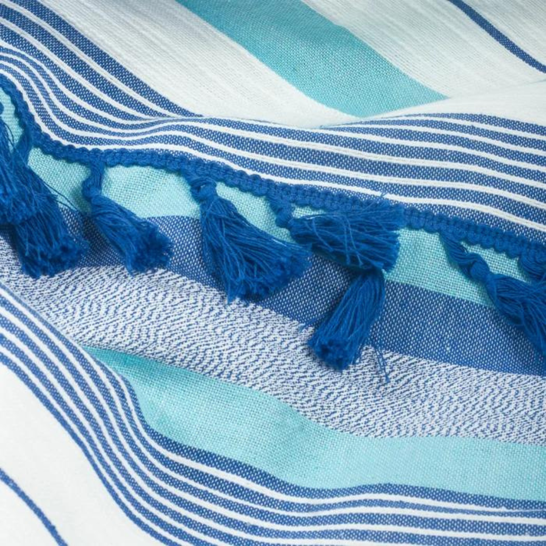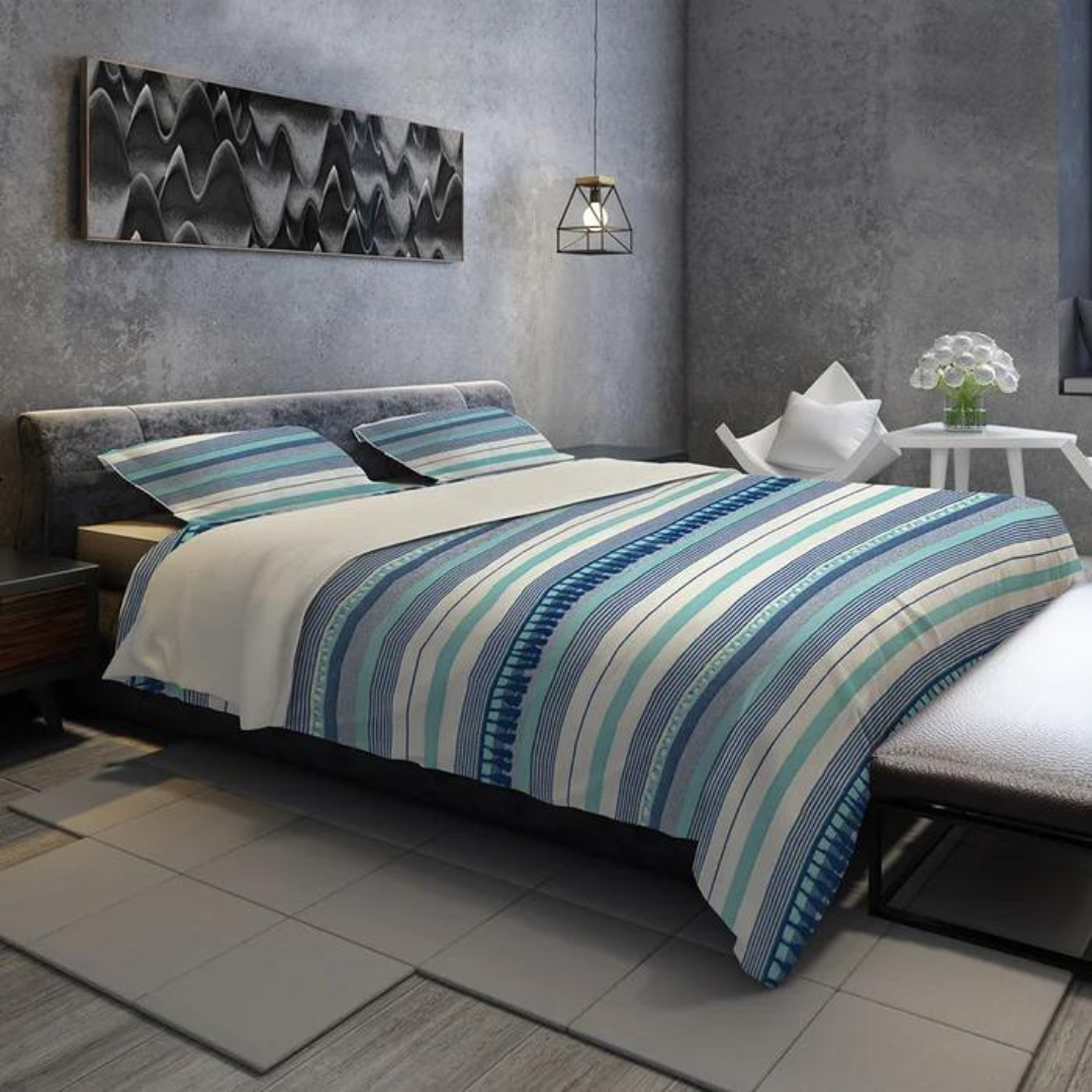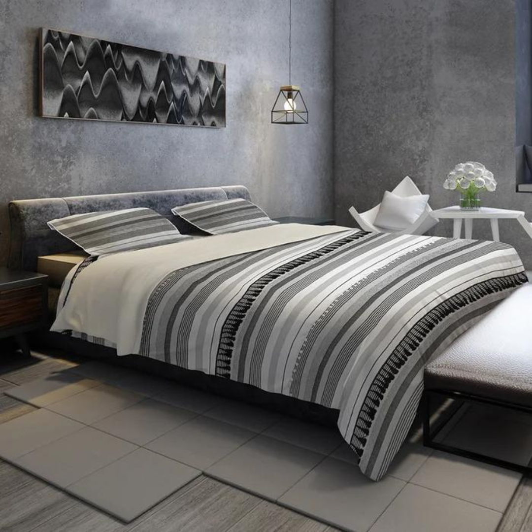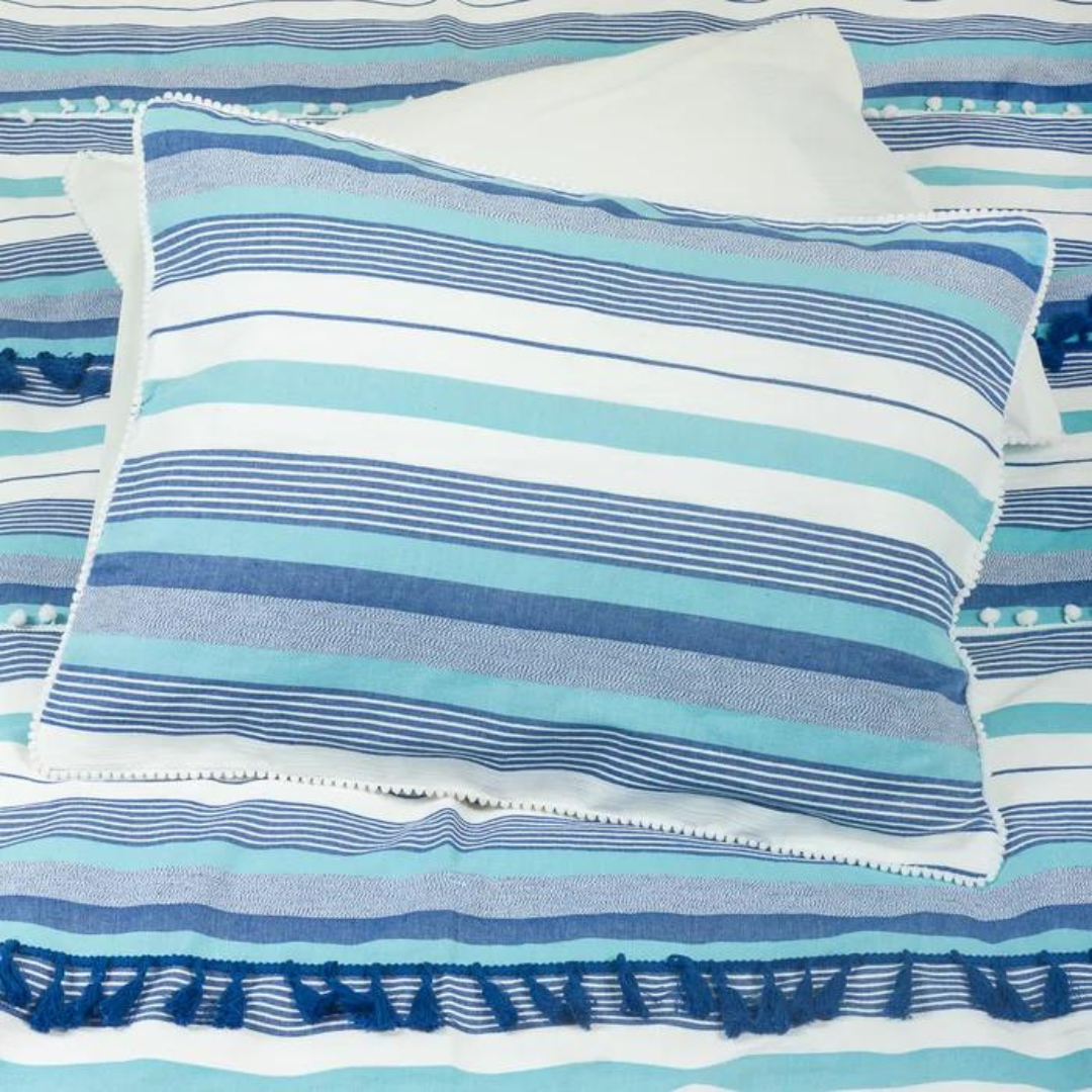 Experience exceptional style and comfort with the stripe duvet cover set. Yarn-dyed striped fabric, adorned with tassels and pom-pom lace will surely bring the cozy contemporary boho charm of your room to the next level. This duvet cover features a hidden-button closure and additional inner corner ties to secure your duvet insert in place during use.