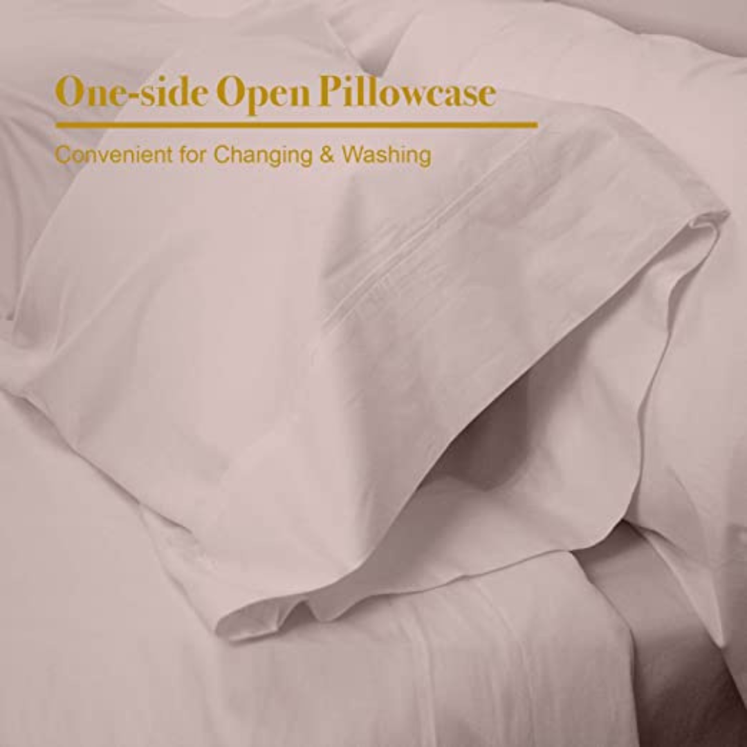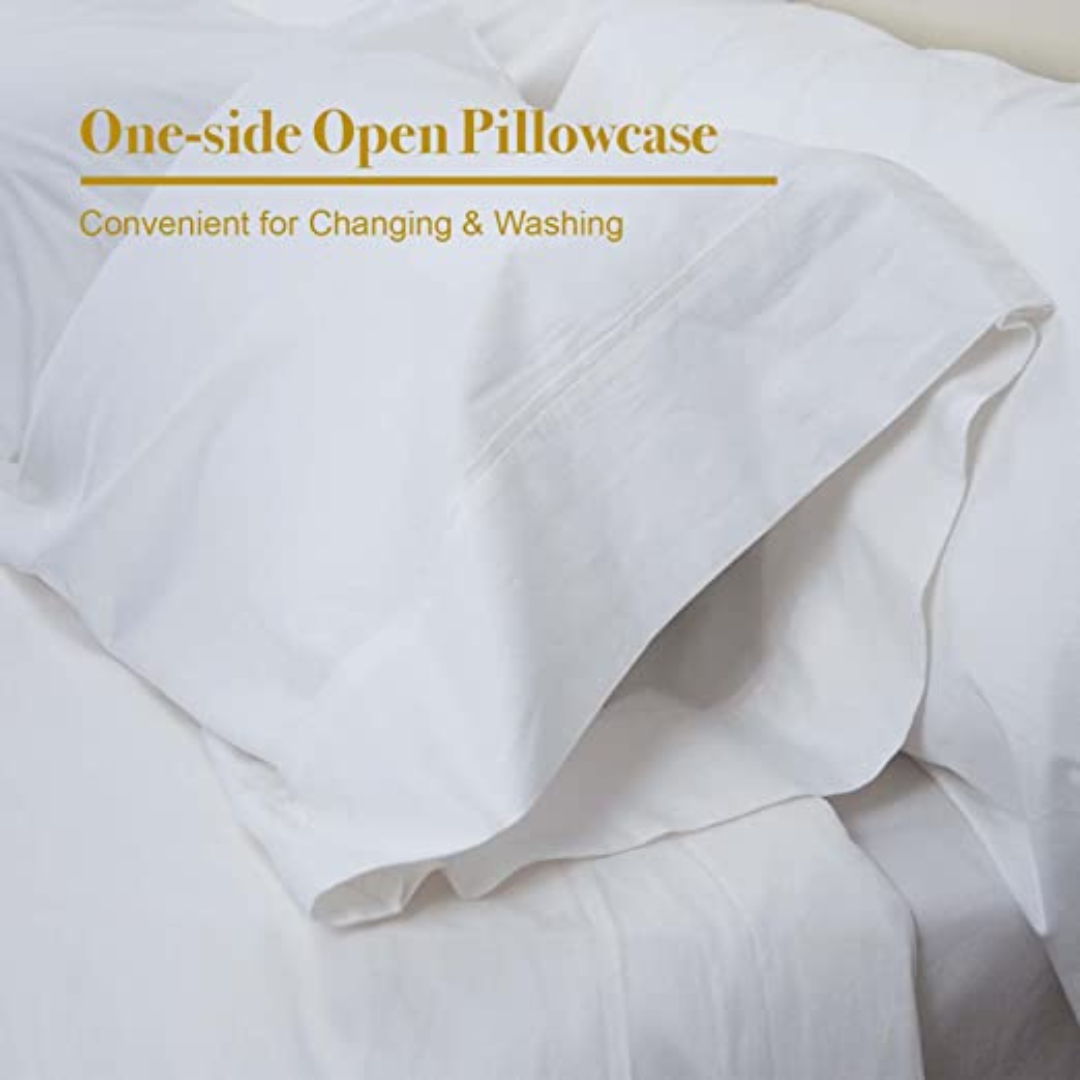 - The 4-piece king sheet set include 1 Flat Sheet (112’’ W x 102 ’’ L), 1 Fitted sheet (76” W x 80” L + 15” deep pocket), and 2 Pillowcases (21” W x 40” L)