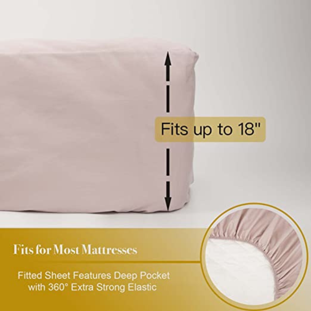 - Our fitted sheet’s extra deep pocket fit for adjustable mattresses up to 15 inches deep, and all-around elastic for a secure fit. ‘Head or Foot’ tag was attached on the side for easily making the bed, and one-side open case pillowcase for changing bedding more convenient. The 3-piece twin sheet set include 1 Flat Sheet (66’’ W x 100’’ L), 1 Fitted sheet (39” W x 75” L + 15” deep pocket), and 1 Pillowcase (21” W x 30” L)
