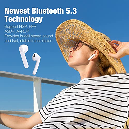 - Latest Bluetooth 5.3 Technology- Wireless earbuds are equipped with the latest technology of Bluetooth version 5.3, which has more stable transmission, lower power consumption, and offers extended range with fewer dropouts than Bluetooth 5.1, providing you with an uninterrupted calling and music experience.