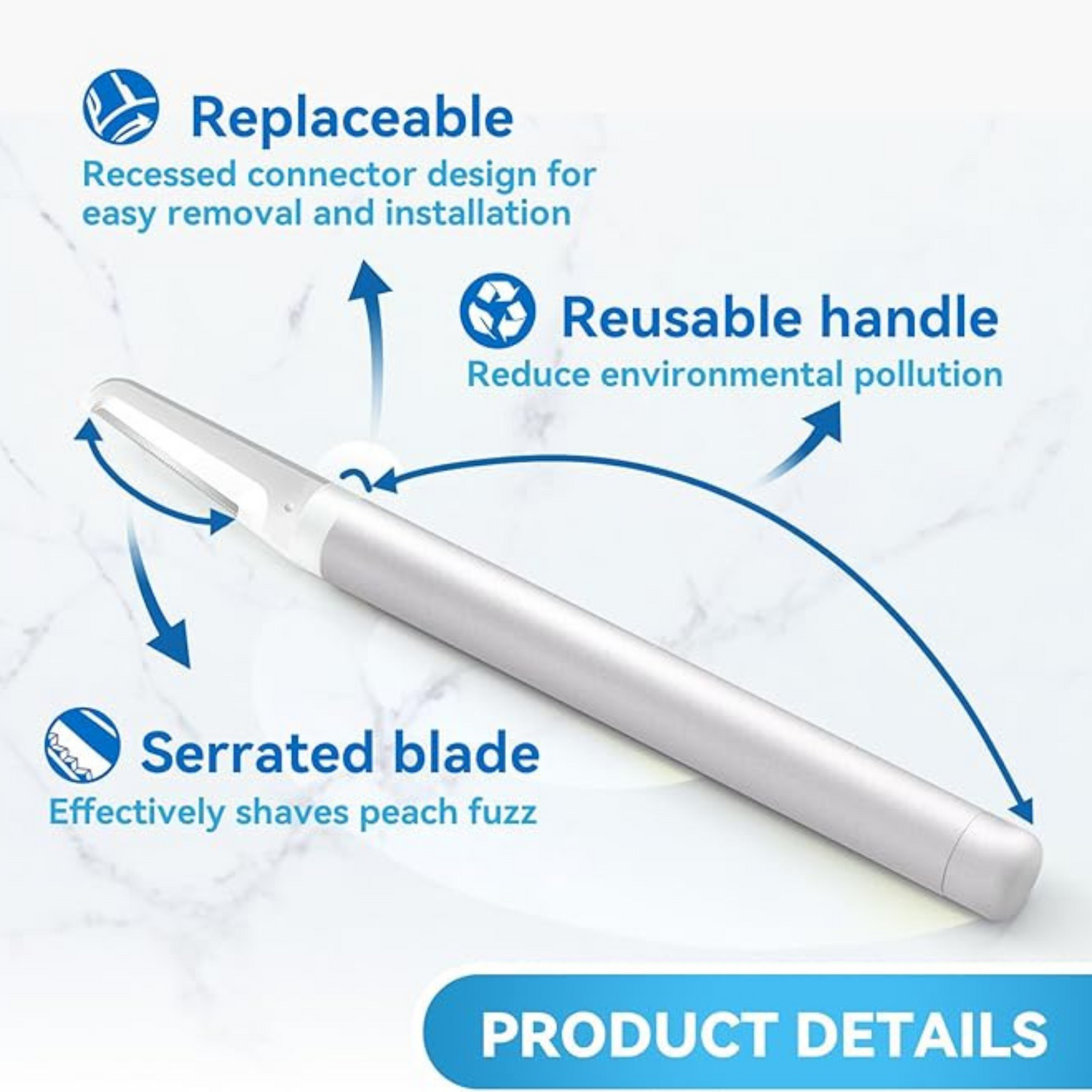 - Toothed Blade Structure: Uses upgraded serrated blade with a toothed design more suitable face shaver for women; Quickly remove cuticles and peach fuzz without irritation or injury, safe and more comfortable