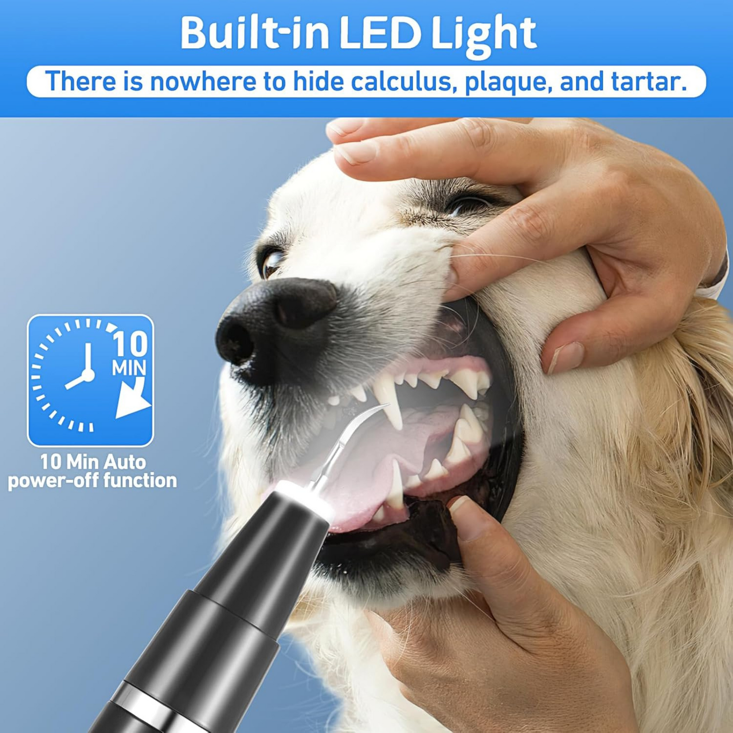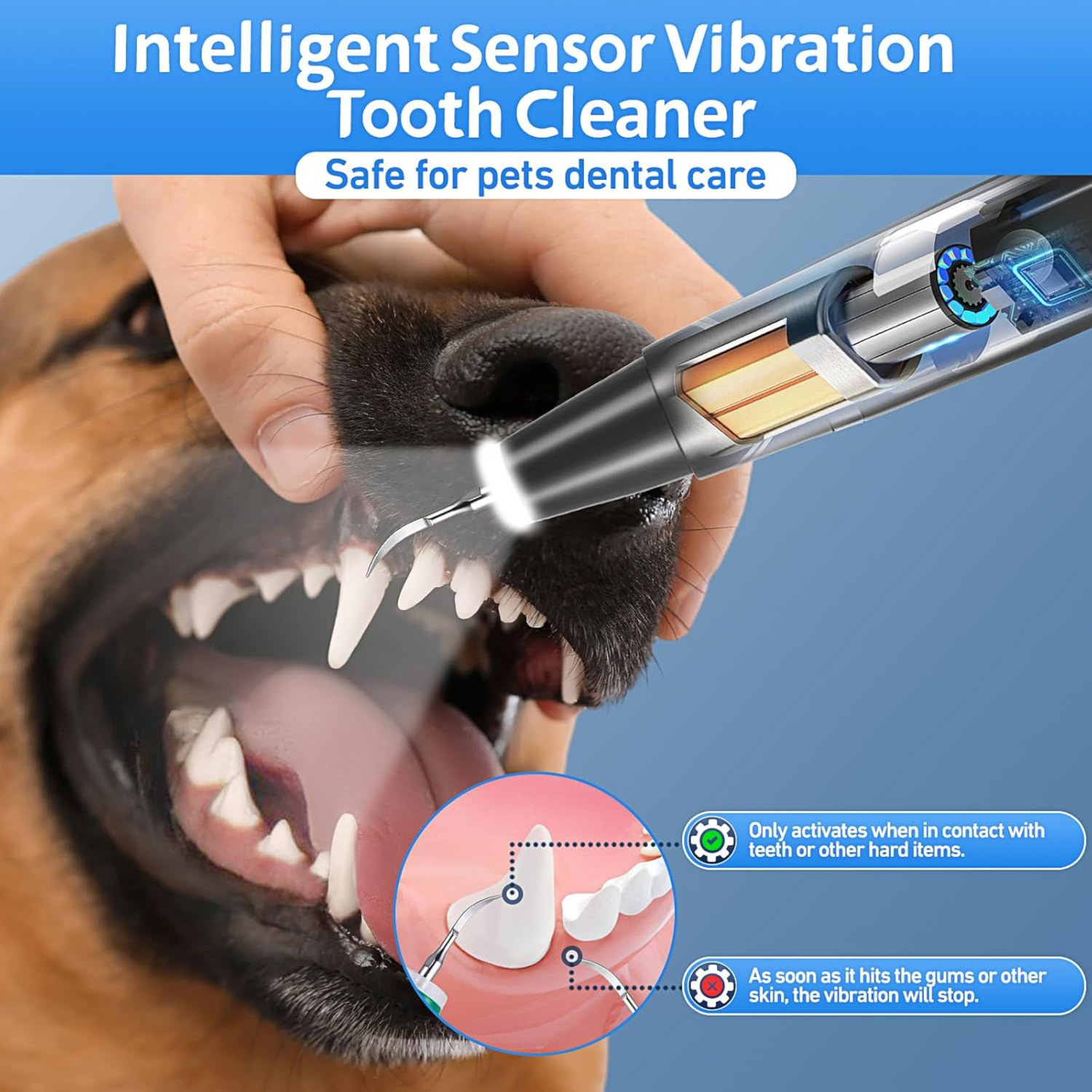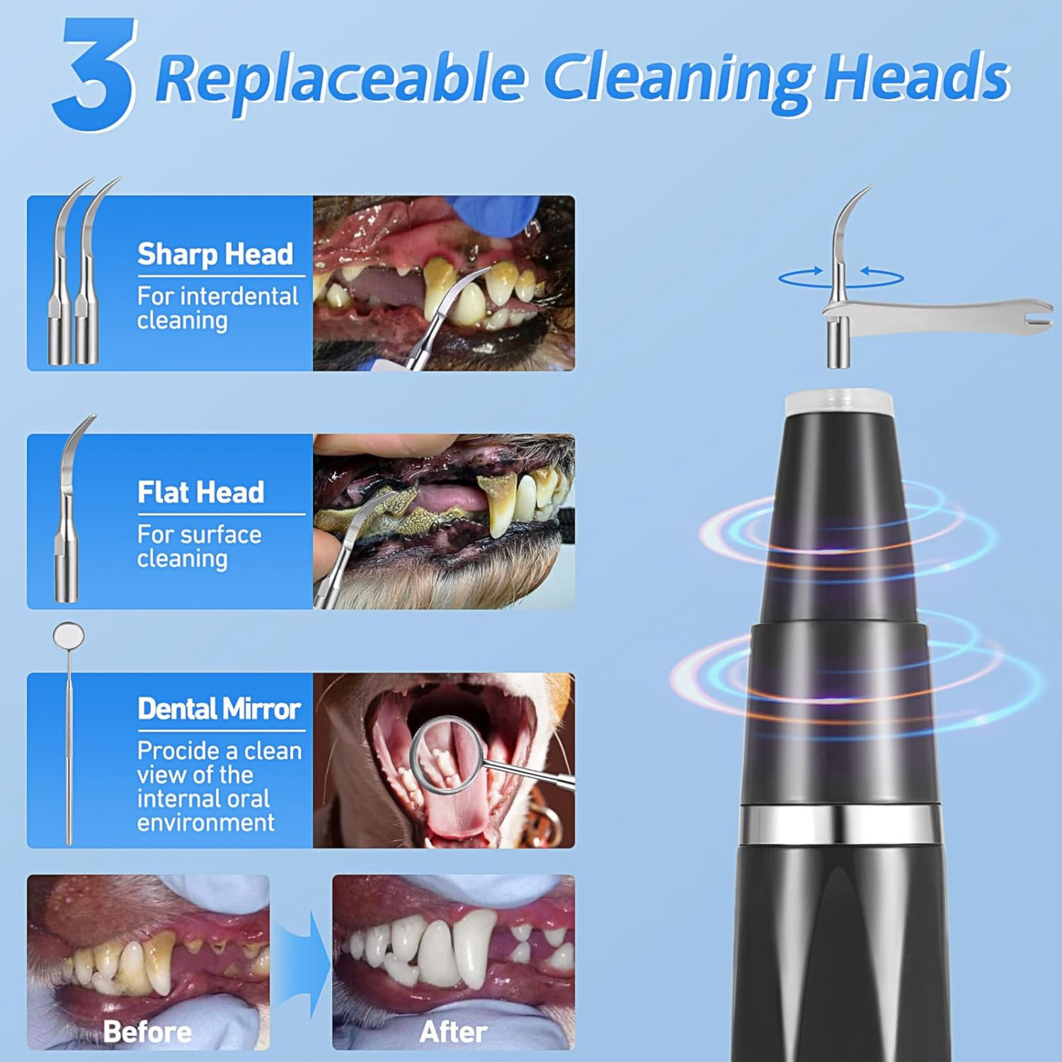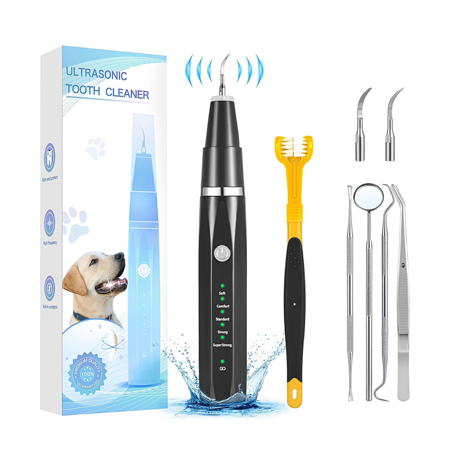 - Professional dog teeth cleaning kit. This kit includes three replacement cleaning blades and mounting tools, an oral mirror, three piece dental calculus manual removal kit, ultrasonic tooth scaler with built-in LED light, and 3-sided dog toothbrush. This is a fully functional dog tooth brushing kit that can saves a lot of time, energy and money by cleaning your pet's teeth at home.