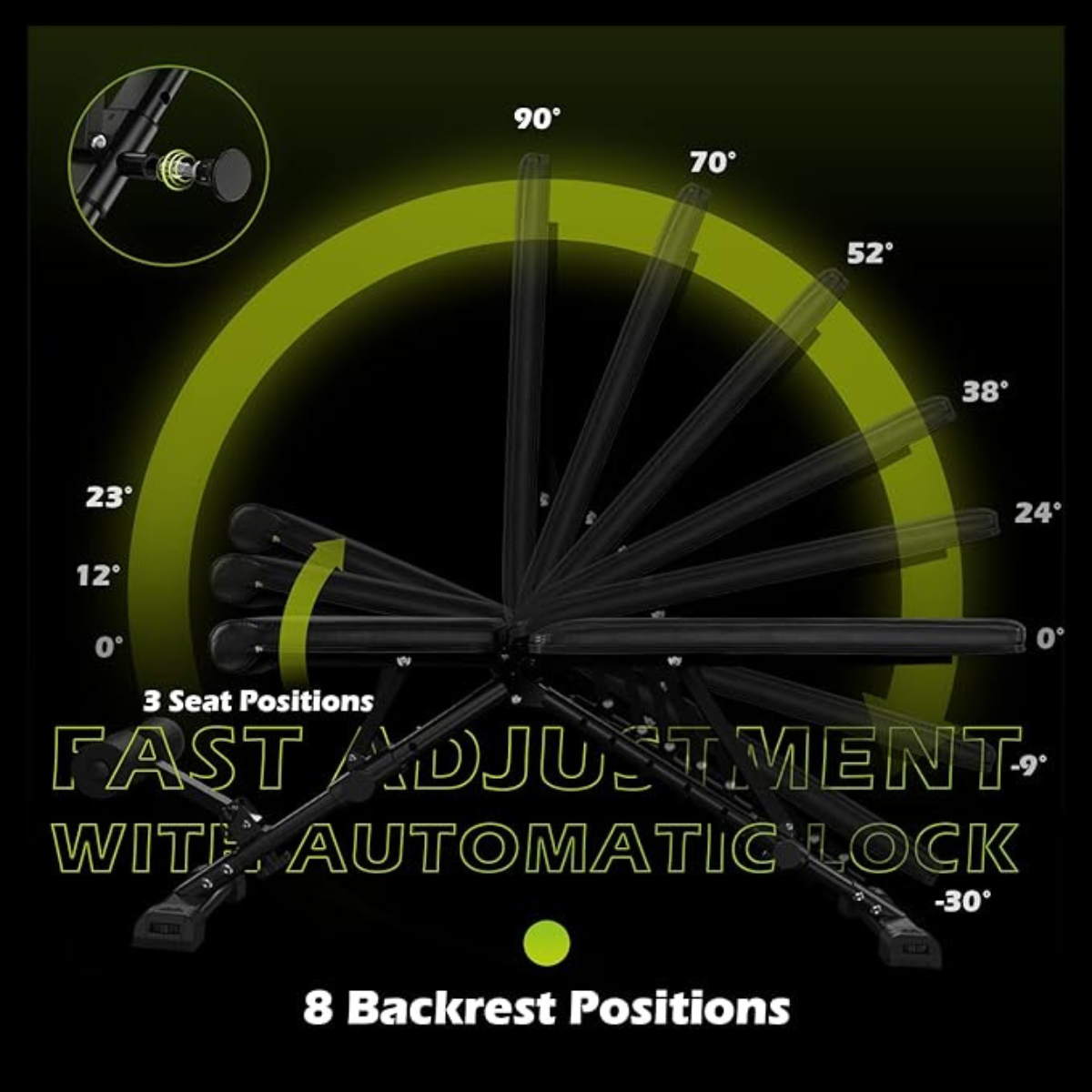 - Fast adjustment with automatic lock- Designed with 7 back positions and 3 seat positions for full body workout; You just pull the fast bolt, adjust the place which fit yourself and automatic lock
