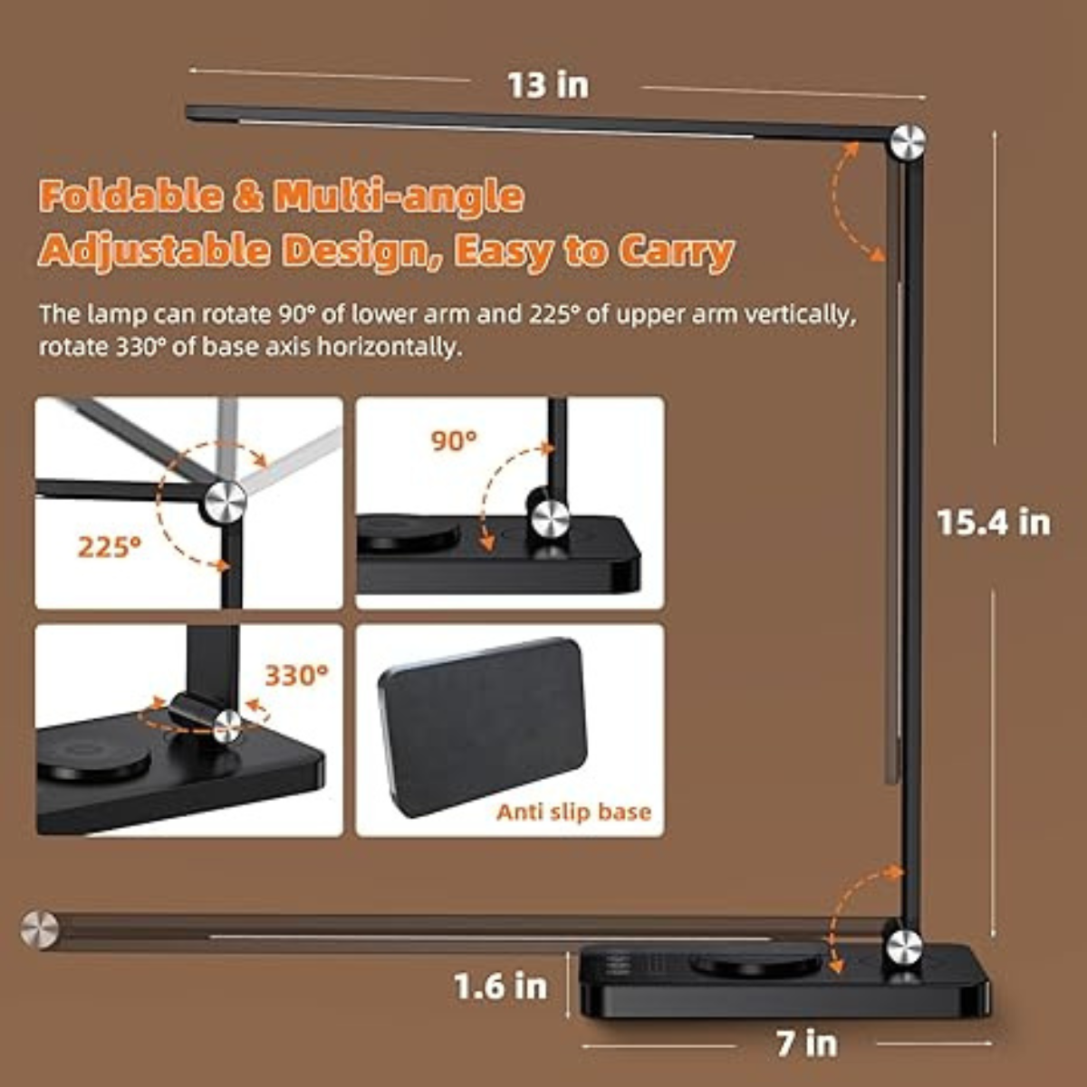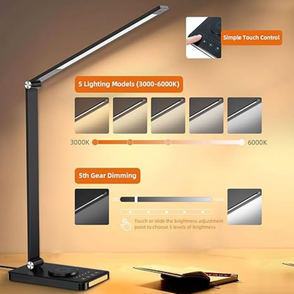 - Touch Control and Memory Function - The LED desk lamp can adjust the brightness level by sliding your finger, the desk lamp has 5 temperature modes (3000K-6000K) and 5 brightness levels, 25 options for you to combine and match the desk lamp. Press and hold for 3 seconds to turn off desk lamp and night light.