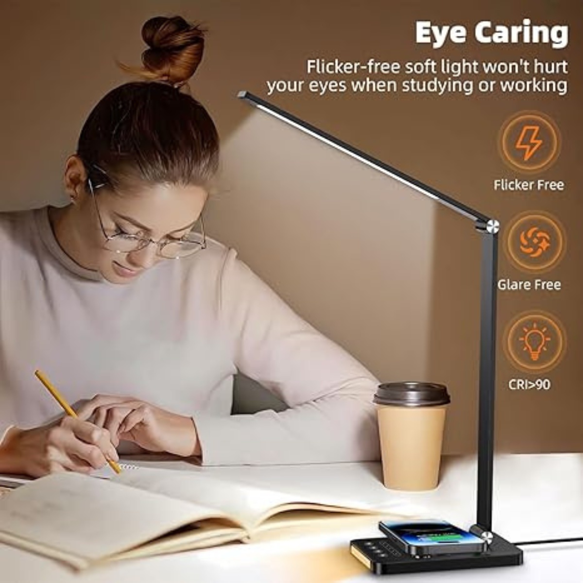 - LED Eye Protection - The desk lamp is equipped with 76 LED beads, providing soft, flicker-free light. Eye protection, ideal for people who read, write or work and study in front of the computer for a long time. This product is perfect whether you are working or studying at home, or as a bedside lamp. It’s also great as a gift for friends and relatives! We also equip the product with an adapted charging head.