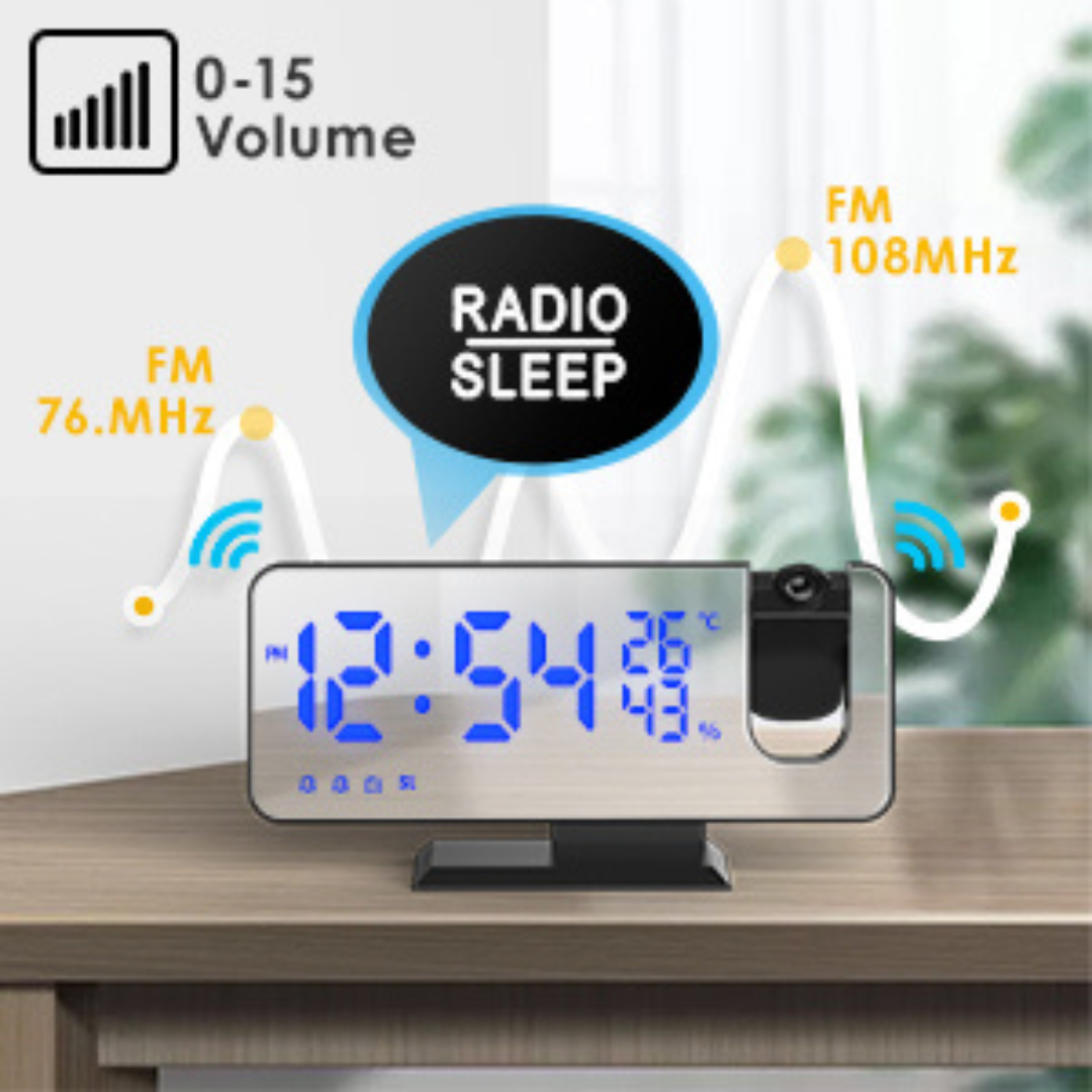- FM-radio and sleep timer function: the radio alarm clock with projection can store up to 30 FM radio stations (76.0 MHz-108.0 MHz). With the sleep timer function, you can sleep comfortably while listening to the radio. After the set time (5 to 60 minutes), the radio turns off automatically.