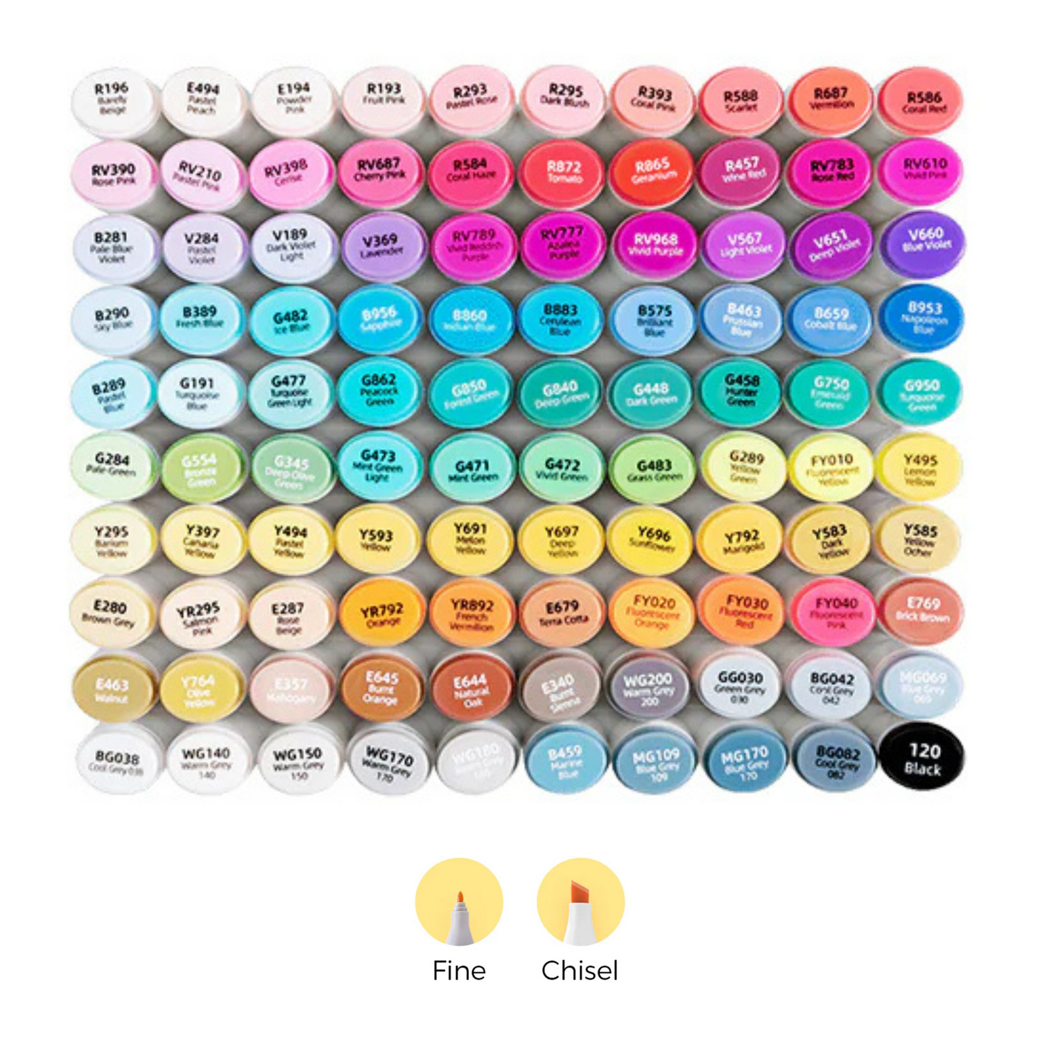 Ohuhu Oahu 100 Colors Dual Tips Alcohol Art Markers Fine & Chisel