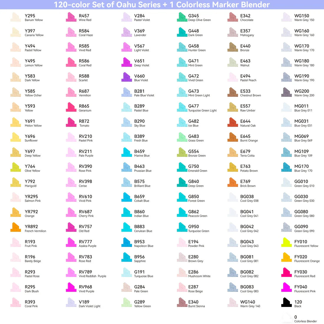 Ohuhu Oahu 120 Colors Dual Tips Alcohol Art Markers Fine & Chisel