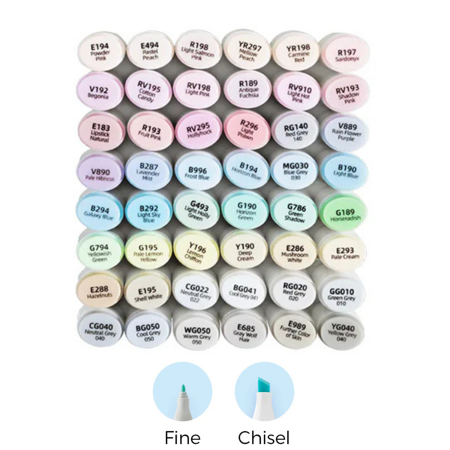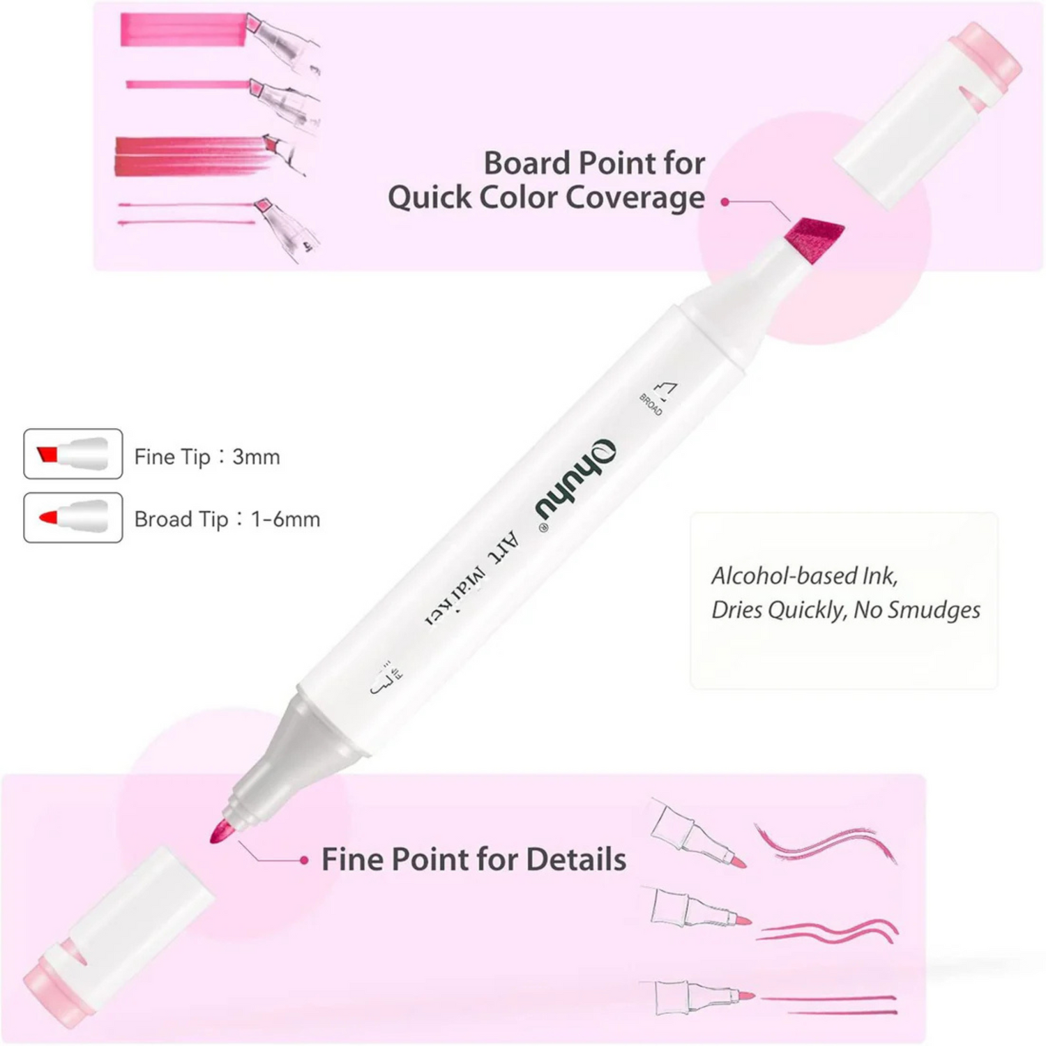 Ohuhu Oahu 48 Pastel Colors Dual Tips Alcohol Art Markers Fine & Chisel