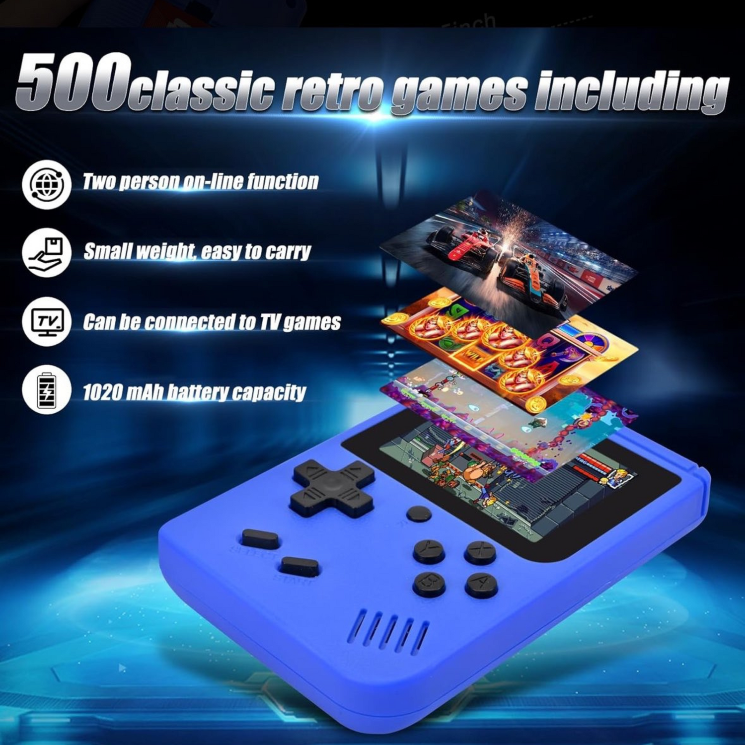 - Newest upgrade 500 Super Classic Games- Built-in 500 retro games in one console: Puzzle, Action, Racing, Arcade Retro Games, Logic & Math, Sports, Arcade, Shooting, Fighting Games, Strategy, Adventure, Card Games and ect. There is always one game that you like. The same game has different level versions such as elementary, intermediate, and advanced, so you have different challenges.