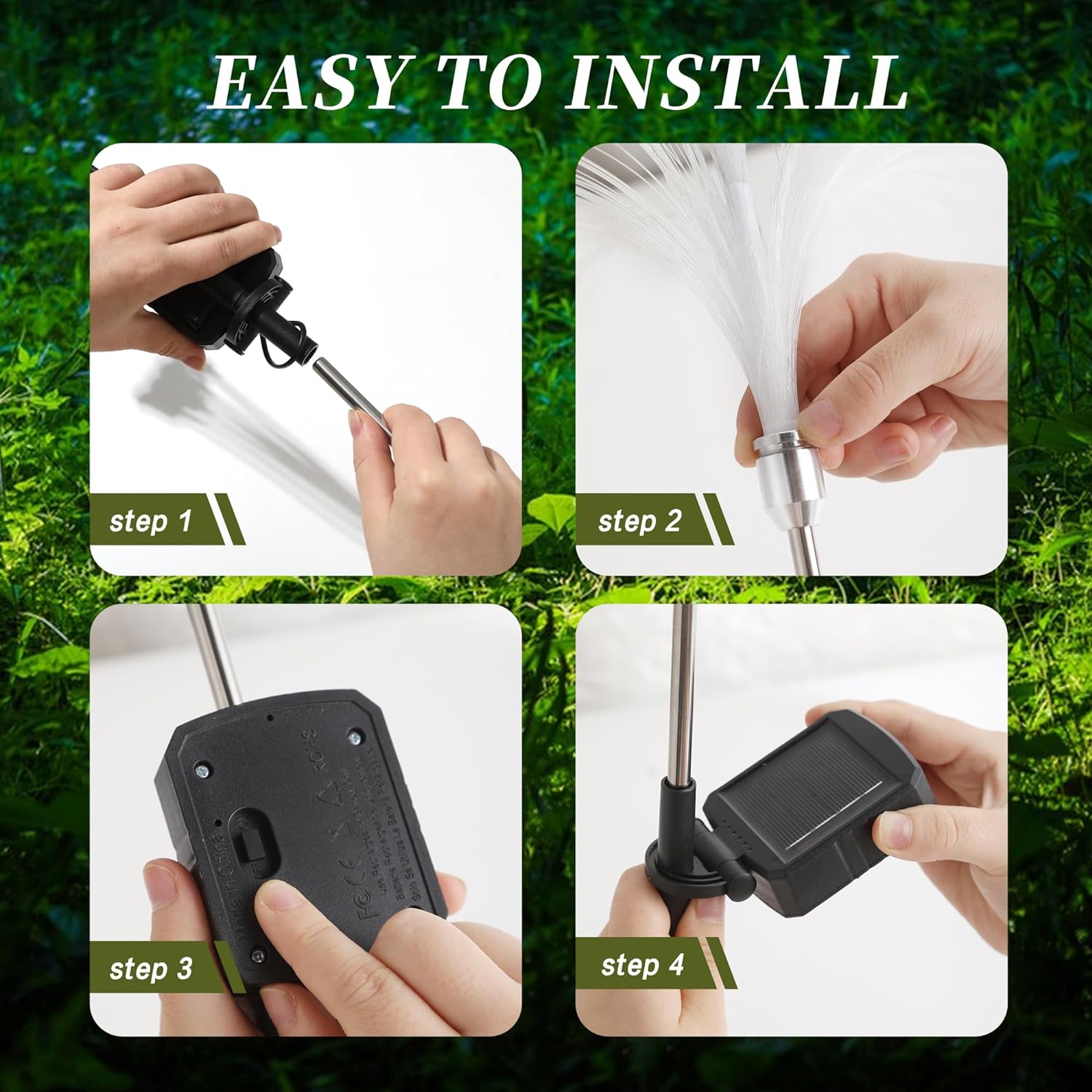- Dance with the Wind - Our solar garden lights are double jellyfish with stars on them, which looks more attractive than the ordinary single jellyfish lights. The fiber optic material is soft and flexible, and the unique design structure makes it sway with the wind, just like the beautiful colorful jellyfish dancing in the water, adding a romantic atmosphere to your yard and bringing you a good mood.